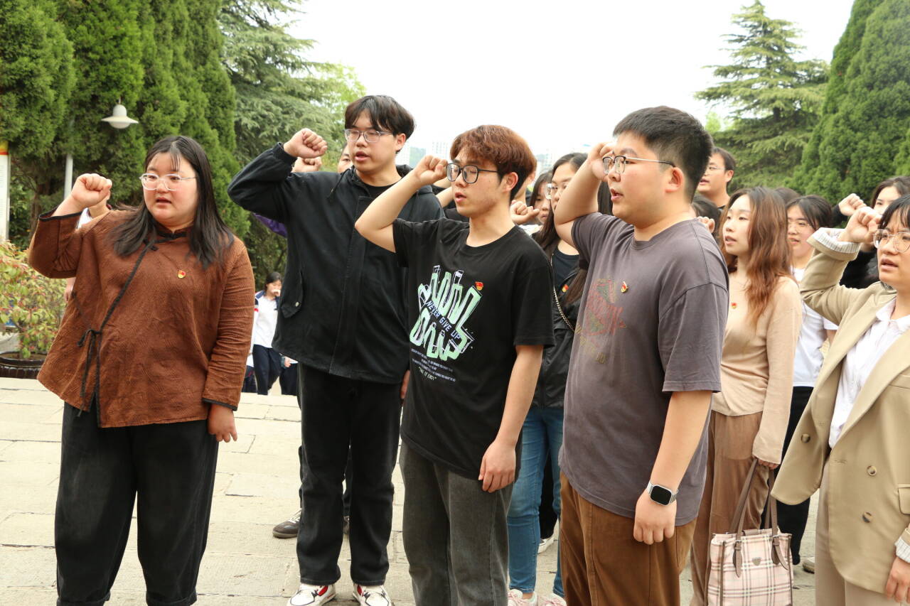 在庄严的革命烈士纪念碑前,师生肃立默哀,向革命烈士表达深深的敬意。随后,全体师生向革命烈士纪念碑敬献花篮,并重温入党誓词,表达为共产主义事业奋斗终身的坚定信念。