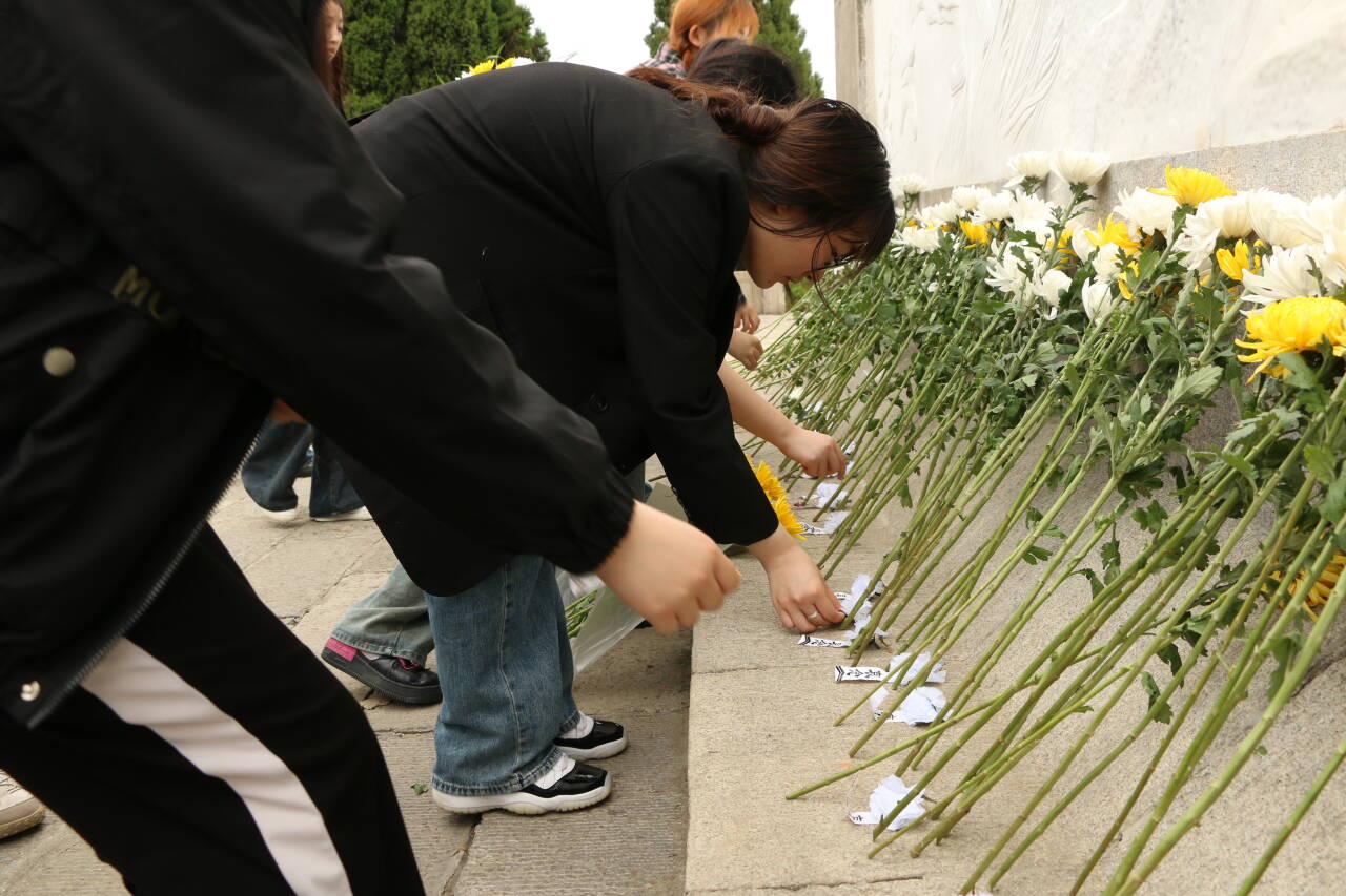 在革命烈士纪念碑前,学生党员代表袁潇骏作主题讲话。他首先向烈士们致以崇高的敬意,并表示:“吾辈青年学子应传承发扬烈士们的崇高精神,勇于担当,敢于创新,为实现中华民族伟大复兴的中国梦而奋斗。”