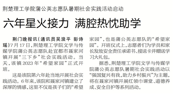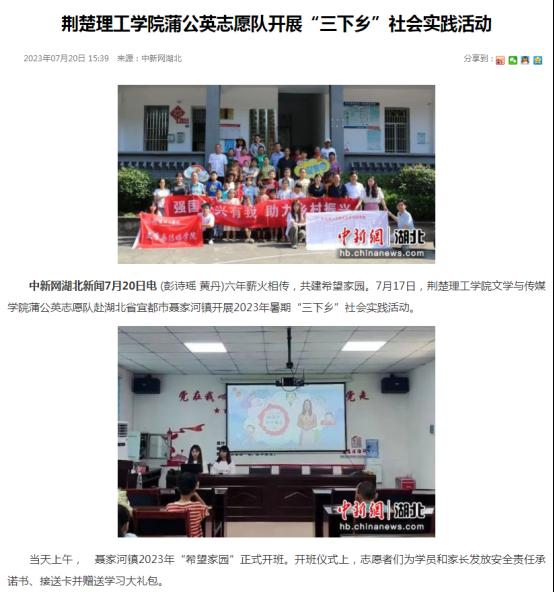 QY千亿球友会2023年蒲公英志愿队“三下乡”暑期社会实践活动扎实推进、成效显著,受到主流媒体的关注和报道。