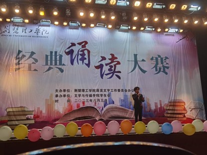 医学部2021级学生许苏爱通过对《月光下的中国》的倾情演绎,在柔和的韵律中表达对祖国的赞美,字字句句皆是赤忱,传达着浓烈的爱国之情;QY千亿球友会2022级学生胡明带来的《我的南方北方》,描绘了中国南方北方的美景、一展黄土地的豪情,铿锵有力的诵读是他对中华文化的赞颂和对祖国不断发展的信心。声声诵读让大家在抑扬顿挫中感受到诗歌的独特魅力。