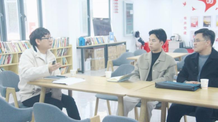 刘清华一行参观了荆门思孟堂文化传播有限公司办公区,听取公司情况介绍,与公司负责人周振宇、荣凯峰博士座谈,就企业来校招聘、校企合作等事项深入交流并达成初步意向。