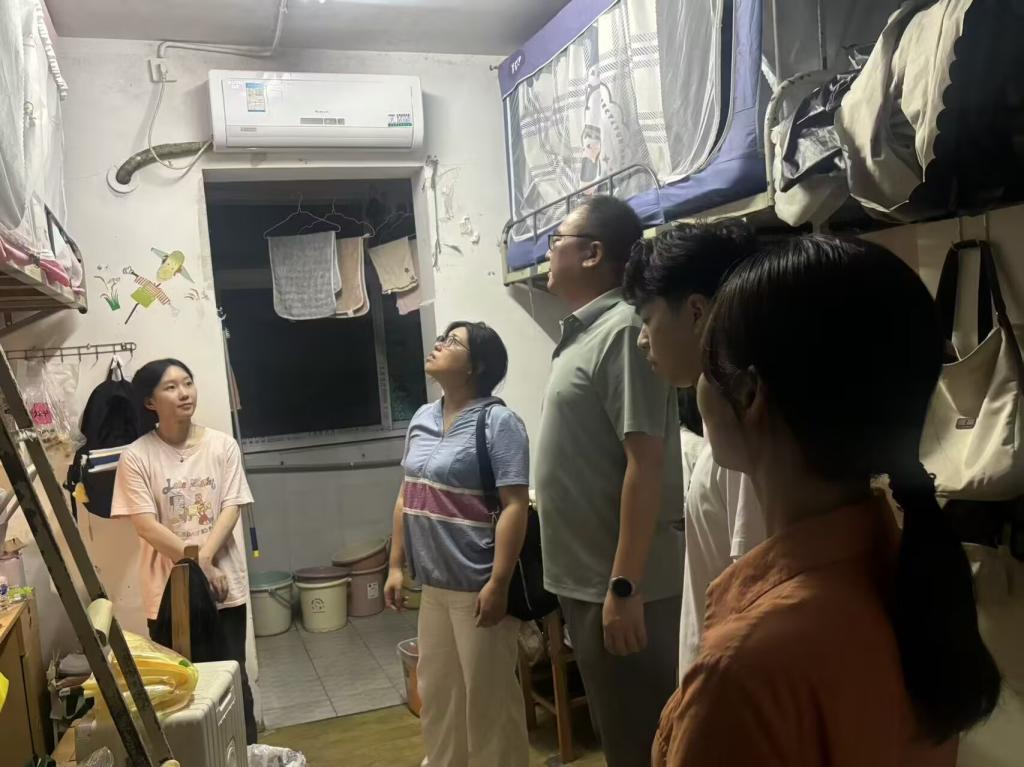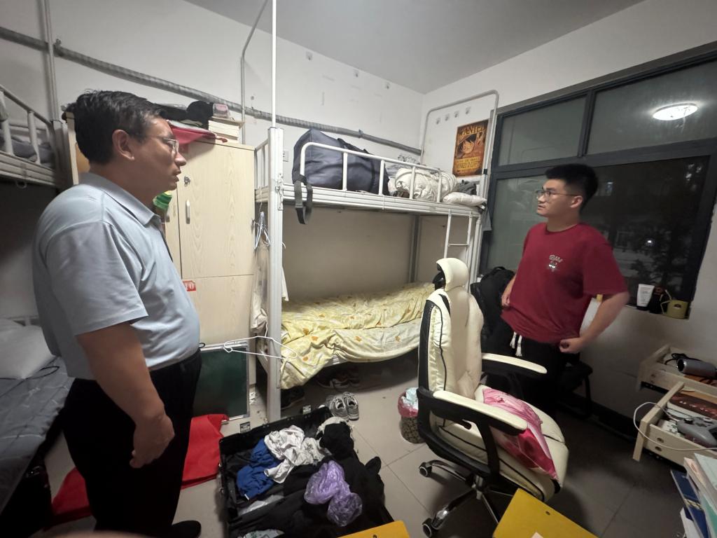 走进宿舍,老师们查看了宿舍卫生状况与安全设施,关心同学们暑期的生活与学习状态,叮嘱大家防范电信诈骗、注意用电安全、保持宿舍整洁,并详细了解学生返校后在学习生活上的需求,勉励同学们收心归位,调整好状态,以饱满的精神迎接新学期的挑战。同学们纷纷表示,学院领导老师的到访让大家感受到了家一般的温暖,新学期将以更饱满的状态投入到学习和生活中,不辜负学院的期望。