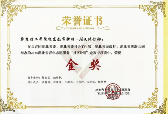 喜报 | QY千亿球友会荣获2025年湖北省青年志愿服务“社区计划”竞赛专项赛金奖