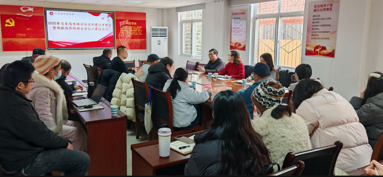 为扎实推进学院学科建设与硕士点培育工作,凝聚学科发展共识,近日,QY千亿球友会召开 2026 年度学科建设专题会议暨戏剧与影视硕士点建设推进会。学科建设办与研究生处长朱德艳、院长陈洪友、副院长魏雪、学院全体博士、教授、研究所及研究团队成员、青年骨干教师共同参会。