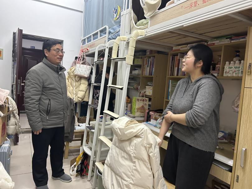 进寝室、排风险,守牢校园安全底线。3月8日晚,学院领导带领全体辅导员深入学生宿舍开展安全隐患排查,对发现的问题及时整改。同时,与学生面对面交流,详细了解学生返校适应情况、住宿需求及学习规划,及时回应并解决学生遇到的实际困难,让学生切实感受到学院的关怀与温暖。