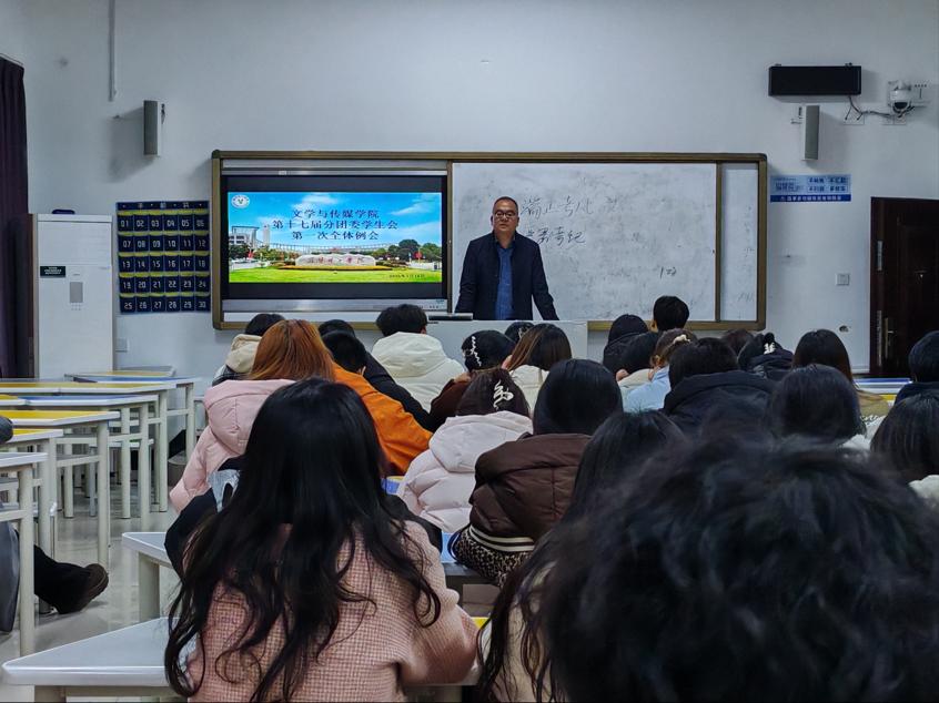 会议伊始,学生会主席佘文畅发表讲话。佘主席对上一学期学生会的工作进行了全面复盘与深入总结,同时向与会人员详细汇报了本学期学生会的工作计划,条理清晰、重点突出。
