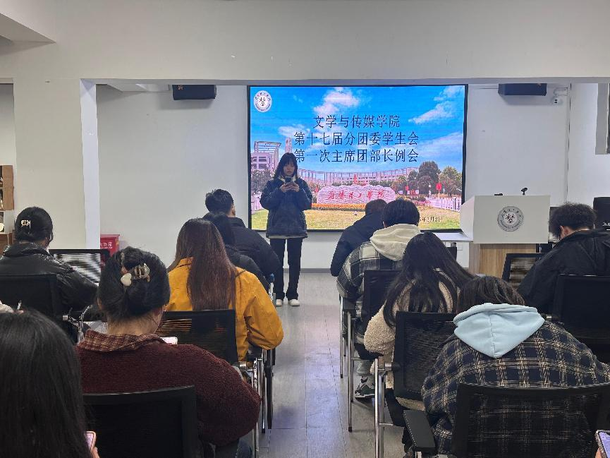 随后,佘文畅主席对前期工作从三个方面进行了总结与反思。第一是查寝时人员到达情况,他指出各部门成员应按时到达,若有特殊情况,需提前向各分管主席说明情况;第二是早读情况,学生会成员应当积极做好带头作用,积极参加早读,促进形成浓厚的学习氛围;第三就是礼貌问题,他强调,各个部门在与人沟通交流时应当注意说话的语气和用词,做到文明讲理。