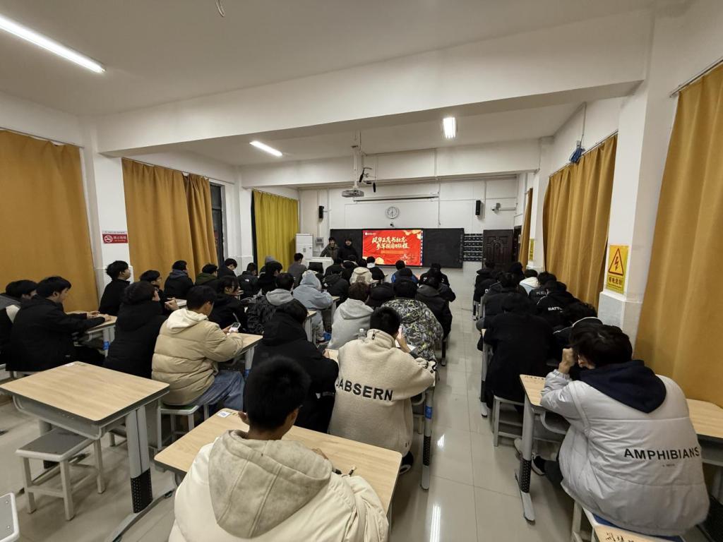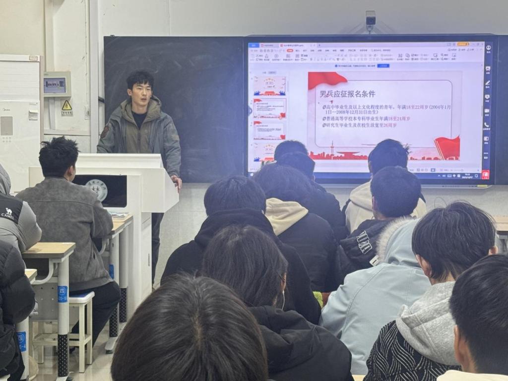 为积极响应国家征兵号召,扎实推进大学生征兵工作,12月12日,QY千亿球友会退役士兵刘宸宇、付世鹏面向QY千亿球友会2025年级全体男生开展征兵政策宣讲暨军旅故事分享会,会议由辅导员杨辰晖老师主持。