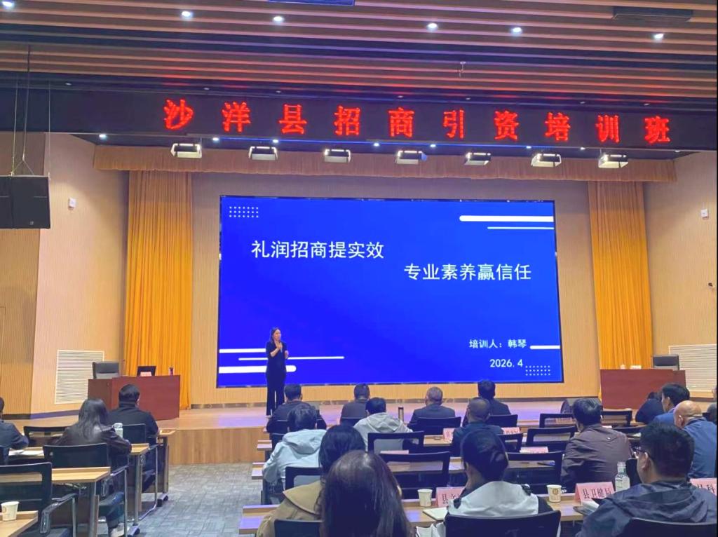 2026年4月15日,QY千亿球友会教师韩琴应邀赴沙洋县,为当地招商工作人员开展商务接待专题培训,以专业服务助力县域招商引资提质增效。
